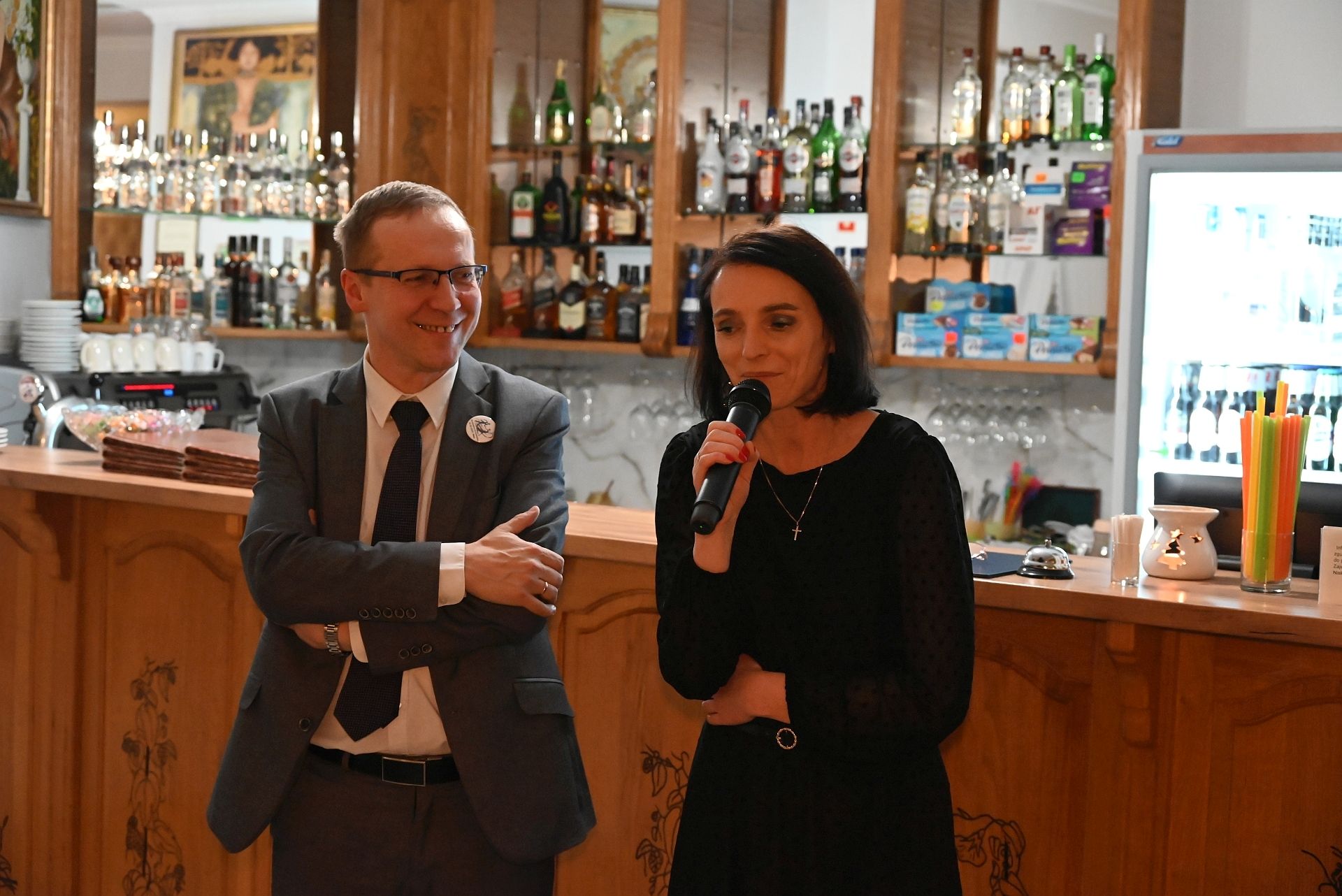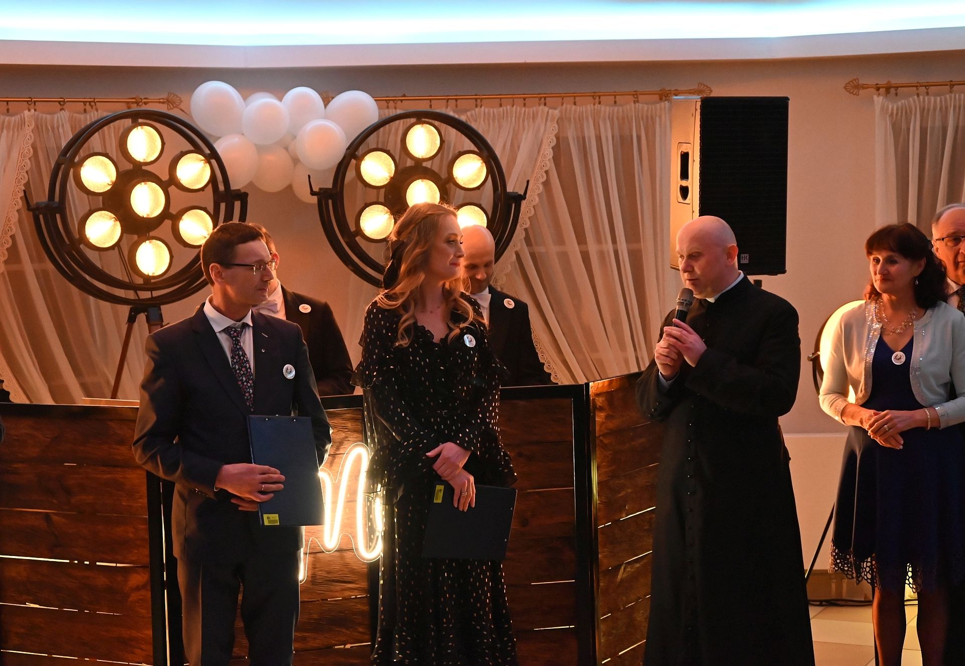 W programie Balu poza posiłkami, tańcem, integracją przewidziana była prelekcja Państwa Doroty i Krzysztofa Zuby – znanych i cenionych doradców życia małżeńskiego. Ów niedługi wykład, nagrodzony gromkimi oklaskami, o roboczym tytule: „Jak budować szczęśliwe małżeństwo” – wskazywał w swej istocie na sakrament małżeństwa jako źródło, z którego w naturalny sposób winniśmy czerpać siły do podjęcia niełatwego wyzwania trwania w wierności złożonym sobie wzajemnie przyrzeczeniom. Naturalność zjawisk zachodzących w życiu małżeńskim, w tym również tych trudnych – na co wskazywali prelegenci – nie jest przeszkodą w dążeniu do świętości nie tyle odrębnej osób, co wspólnej małżonków. O tym, że jest ona możliwa wskazują coraz liczniejsze beatyfikacje świętych małżonków. Państwo Zubowie posilili się przykładem świętych Zelii i Ludwika Martin zaś tu w oparciu o litanię ku ich czci wskazali na te obszary życia, które w doskonały sposób mogą prowadzić ku zamierzonej świętości. Konkludując – niemożliwe jest zbudowanie szczęśliwego małżeństwa inaczej niż poprzez uporczywe i konsekwentne dążenie do wspólnego uświęcenia.